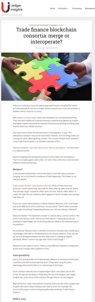 Ledger Insights: Trade Finance Blockchain Consortia